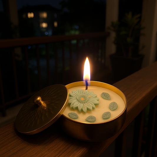 Luxury Metal Jar Candle with Floral Wax Design | Handcrafted Decorative Candle with Lid for Home Décor & Gifting