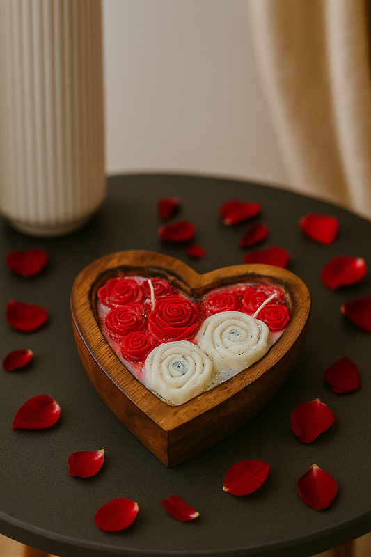 Heart Shaped Wooden Rose Candle – Handcrafted Decorative Romantic Candle for Home Décor & Gifting