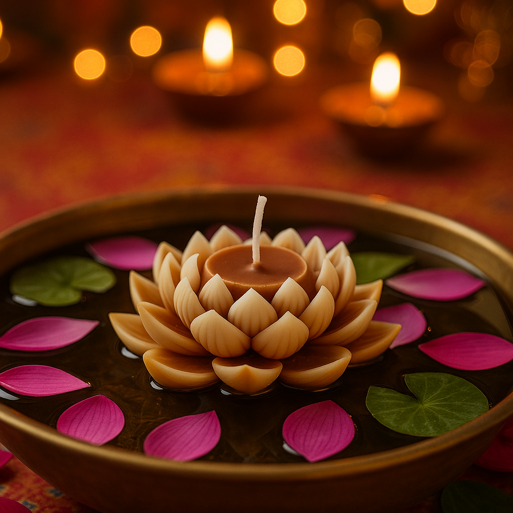 Luxury Golden Lotus Candle – Perfect for Festive & Home Décor