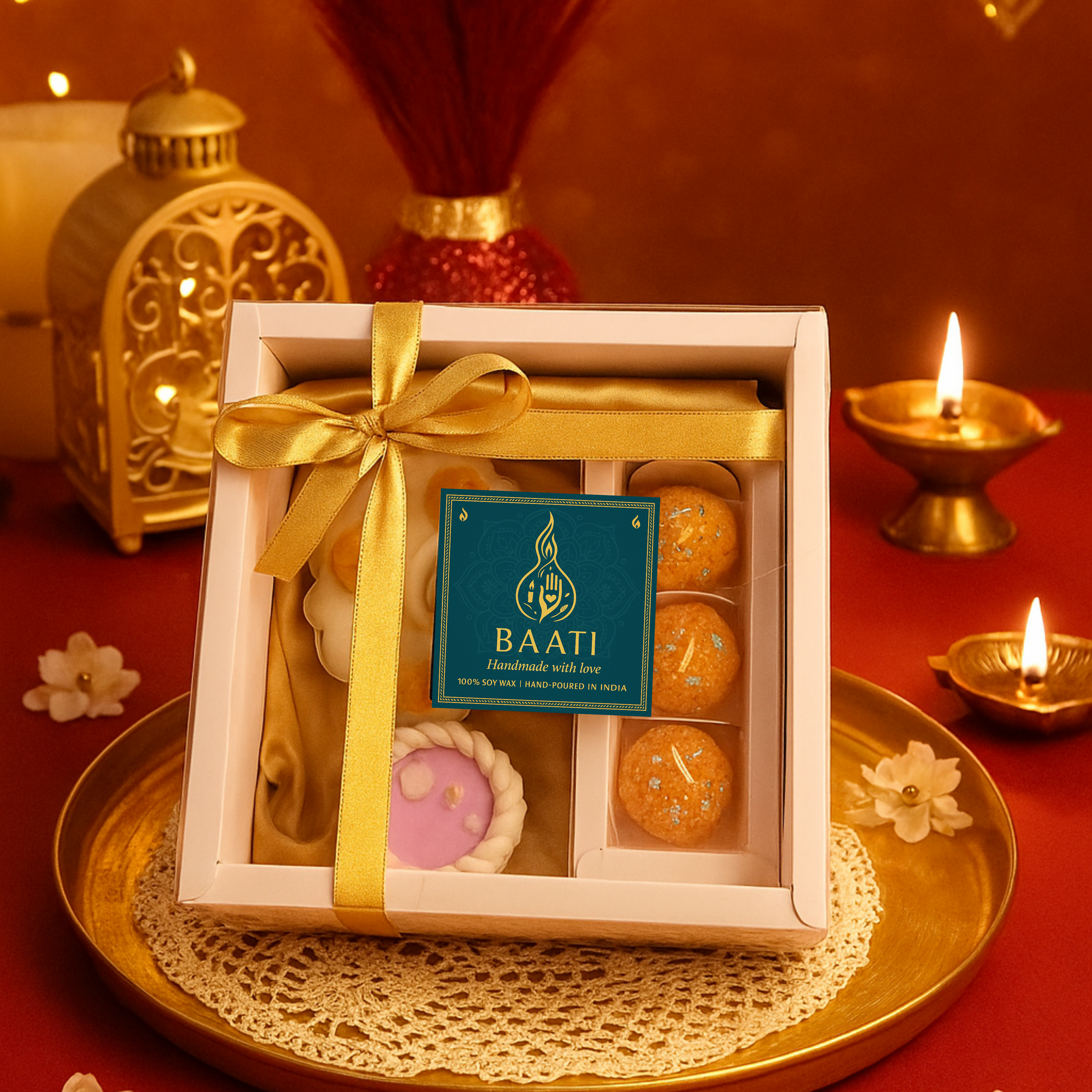 The Baati Diwali Celebration Box - Assorted Soy Wax Candle & Diya Set